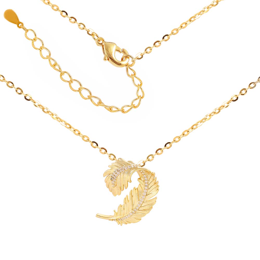 Yellow Gold Feather Pendant Necklace